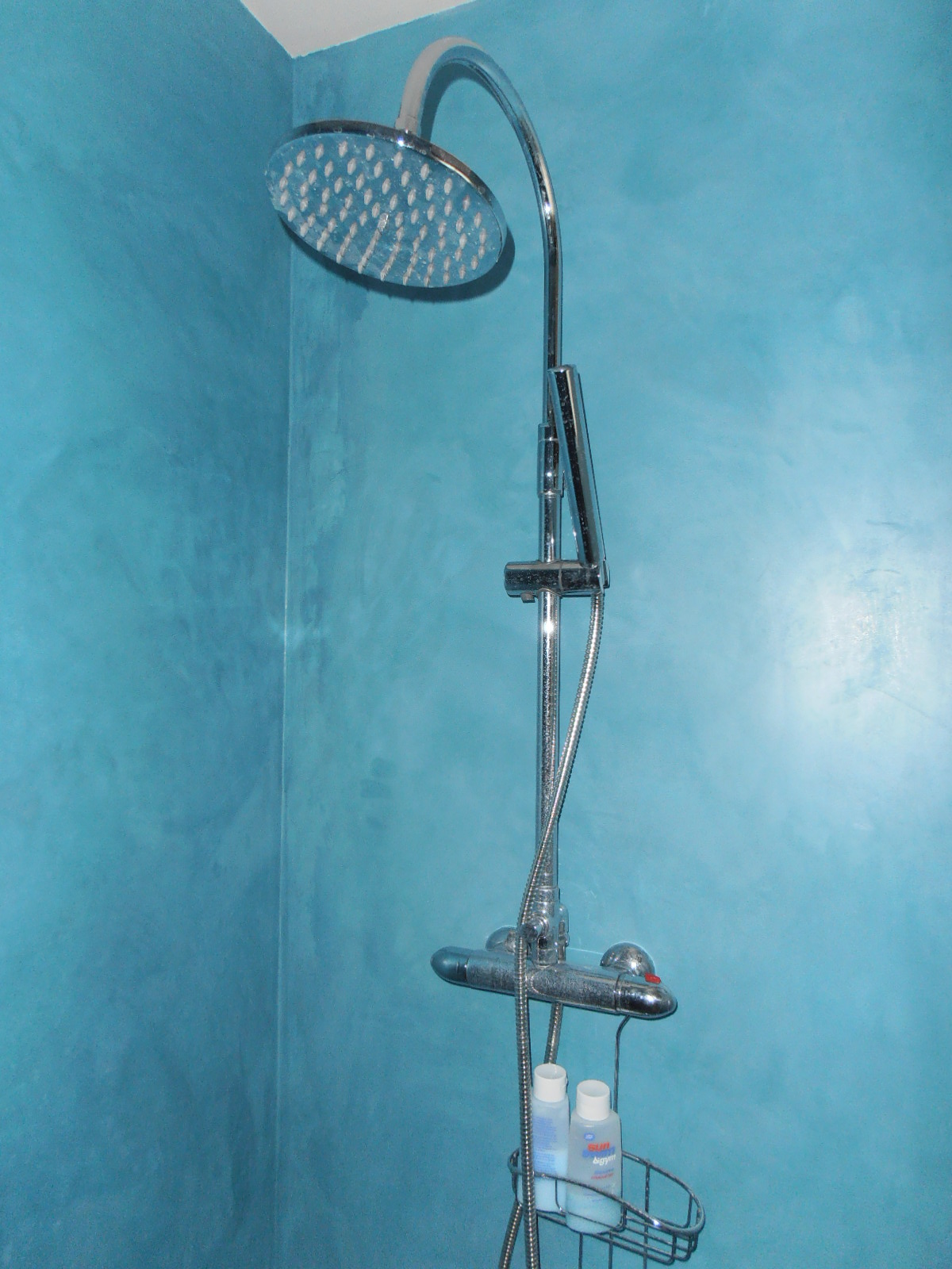 The Tadelakt also does not need chemical products for cleaning and maintenance. You also don't need corrosive products to clean lime or joints where mold can build up. We can save the purchase, handling and storage of many products harmful to our health. The Tadelakt only occasionally needs cleaning with a soft cloth, some water, and if necessary a little natural soap. While a normal bathroom, with ceramic or plastic surfaces, requires cleaning after each use. The Tadelakt does not need as much cleaning, thanks to its peculiar properties and saves a lot of time and effort.