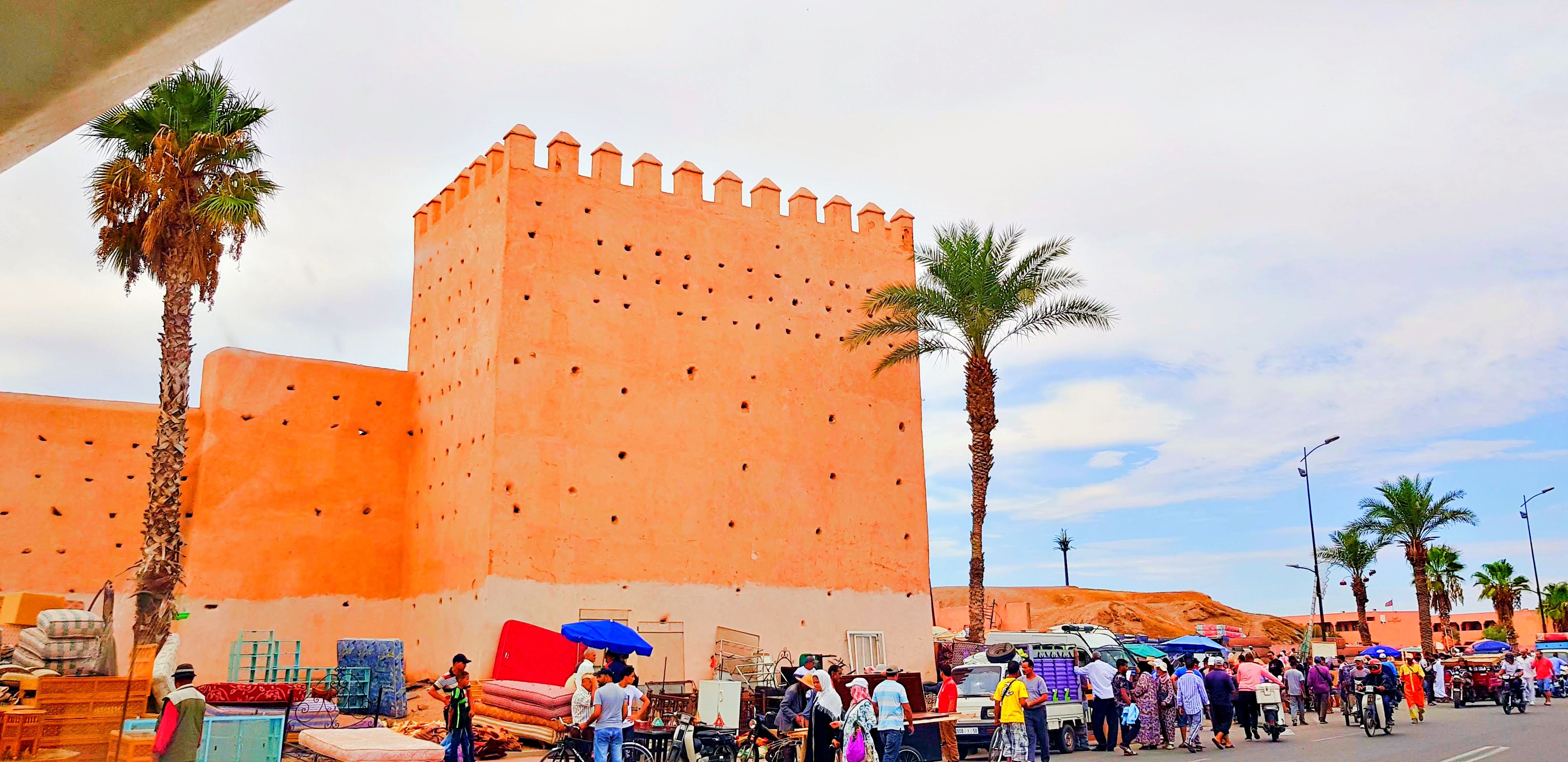 S'étendant sur 19 kilomètres, ces remparts sont jalonnés de portes majestueuses, ou « bab », chacune servant de point d'entrée et de sortie stratégique pour la ville. La plus célèbre d'entre elles est Bab Agnaou , qui, bien que décorative aujourd'hui, était à l'origine l'une des principales entrées de la cité royale.