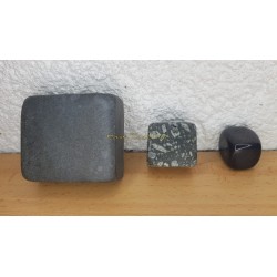 Set di tre pietre base per eseguire Tadelakt con agilità e precisione. Questa combinazione è ideale per gestire quasi ogni situazione che si possa presentare durante l'esecuzione del Tadelakt. Questo set include due pietre originali marocchine che, per le loro caratteristiche uniche, non possono essere sostituite con altri tipi di pietre. Nessuna pietra di fiume lucidata o pietra semipreziosa può raggiungere questa speciale finitura. Le pietre semipreziose vengono sempre utilizzate, occasionalmente, dopo le pietre marocchine.